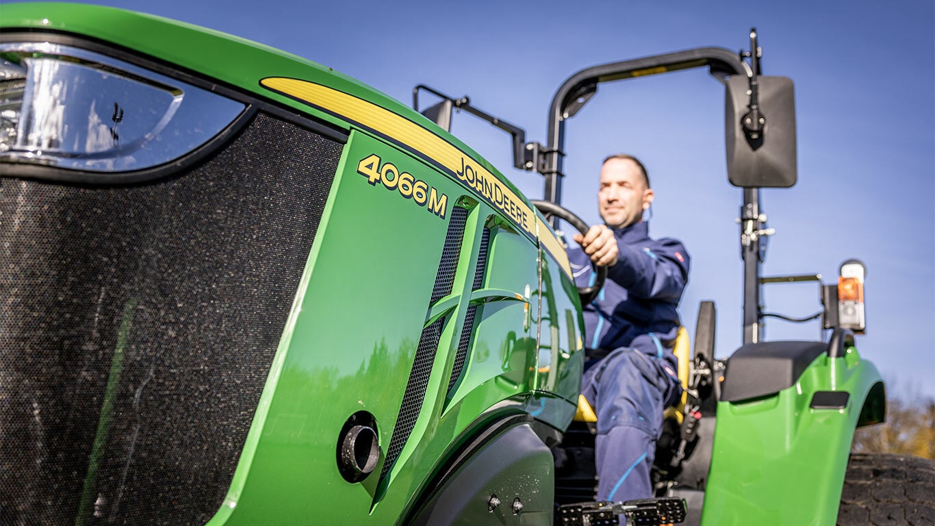 De 4066M biedt u het vermogen en de besturing van een volwaardige landbouwtractor. Met een viercilinder-dieselmotor, een eHydro™-transmissie, vierwielaandrijving en een nieuw, intuïtief bedieningspaneel tot uw beschikking, hebt u alles dat nodig is om grote klussen effectief en met gemak aan te pakken.