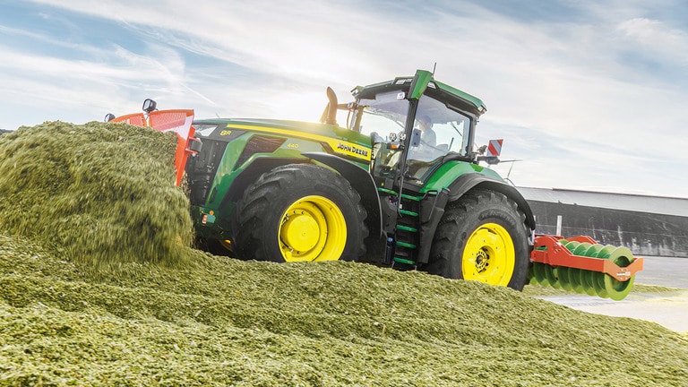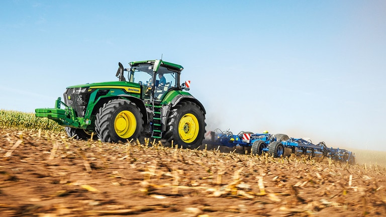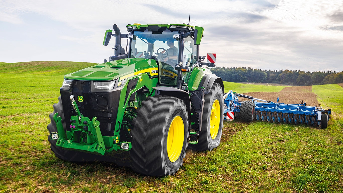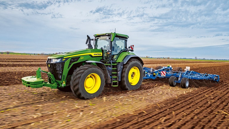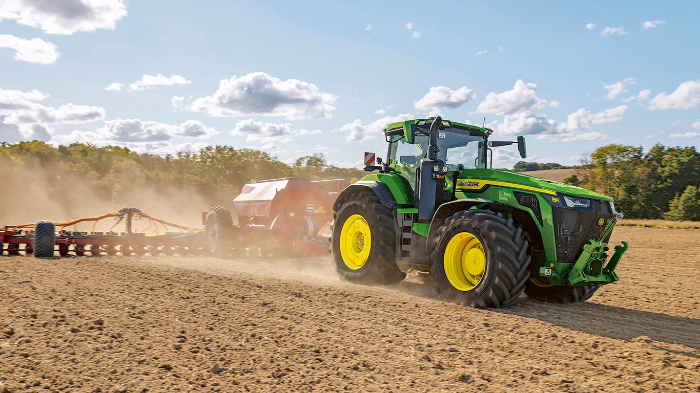 De nieuwe 8R High Horsepower tractoren leveren de trekkracht die u nodig hebt voor de zwaarste werktuigen. Met Peak Power IPM levert de JD14-motor tot 634 pk precies wanneer dat nodig is voor topproductiviteit onder alle omstandigheden. De unieke eAutoPowr™ levert traploze acceleratie en tot 8% betere krachtoverbrenging in vergelijking met standaard hydromechanische traploze transmissies*. De nieuwe 8R High Horsepower heeft achterbanden tot 2,30 m, voorbanden tot 1,85 m en een centraal bandendruk regelsysteem met één enkele lijn voor superieure bodembescherming, krachtoverbrenging en veelzijdigheid.