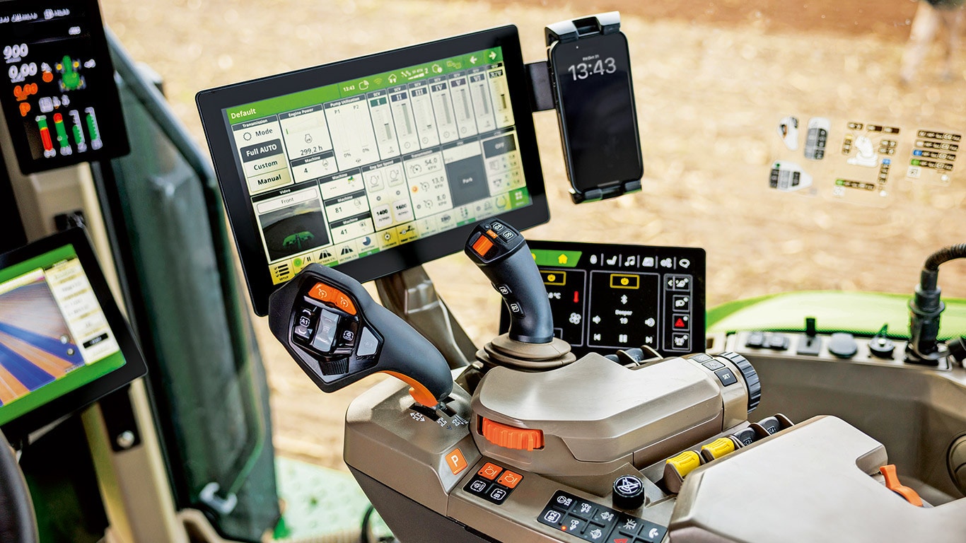 8 serie tractoren, met de betrouwbare 3,30 m³ CommandView™ 4 cabine met verstelbare vering of ActiveSeat II™, 65° draaibare stoelen, drie voetsteunen, de tweede generatie touchscreen radio met draadloos Apple CarPlay® en Android Auto™, plus een premium 6.1 geluidssysteem, zetten de norm in cabinecomfort. De nieuwe elektrisch verstelbare stoel met geheugenfunctie, nekventilatie en massagemogelijkheden biedt premium comfort, zelfs op lange werkdagen. De nieuwe generatie CommandARM™ met het nieuwe comfortdisplay, de nieuwe CommandXPlus of CommandXPro kunt u alle belangrijke functies binnen handbereik bedienen.